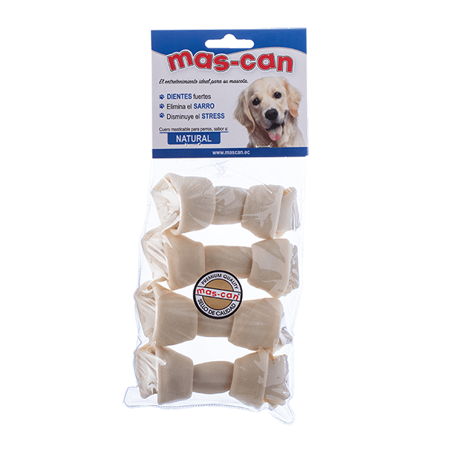 Mascan hueso de carnaza es un snack para perros que ayuda a mantener encías y dientes sanos; además es un excelente juguete de entretenimiento canino. Sabor a carne, natural, pollo y ahumado.