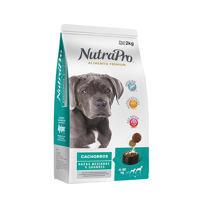 NutraPro cachorro es un alimento premium para perros cachorros de razas medianas a grandes único con Optican. Contiene mayor proteína, mejor digestibilidad y estimula las defensas. La incorporación de ácidos grasos, Omega 3, Omega 6 y ácido pantoténico constribuyen a mantener la piel saludable y un pelaje fuerte, sano y brillante.