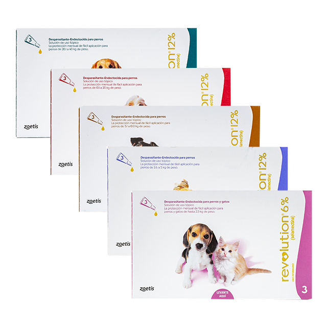Revolution pipeta para perros está indicado para el tratamiento y el control de las infestaciones por pulgas, el control de las microfilarias de Dirofilaria immitis y el tratamiento y control de los ácaros de las orejas en perros. Además funciona contra nemátodos del perro (Toxocara canis y Toxascaris leonina) y sarna sarcóptica en perros.