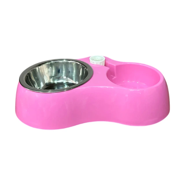 Plato doble plástico y acero inoxidable para mascotas PL22