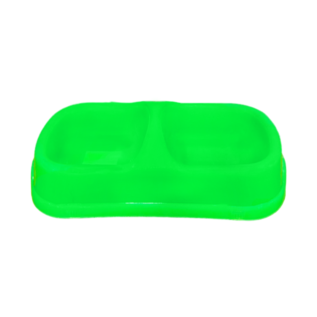 Plato doble diseñado con dos compartimentos separados que permiten servir comida y agua simultáneamente en un solo lugar. Esto proporciona una solución práctica y ordenada para alimentar a tus mascotas, manteniendo sus alimentos frescos y accesibles en todo momento. Fabricado con plástico de alta calidad, nuestro plato doble es resistente y duradero, lo que garantiza una larga vida útil incluso con el uso diario.