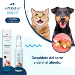 Spray Sponge OralVet elimina y previene la formación de placa dental y el mal aliento.